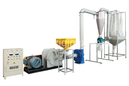 塑料磨粉機封閉式設計,利用自身風量與風壓,將其制好的粉體收集,無粉塵泄漏。