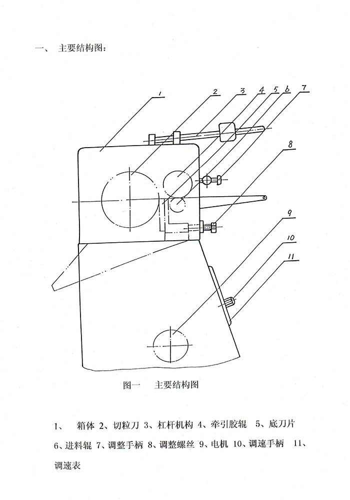 5.調整螺絲(8)用來調整底刀片(5)與切粒刀(2)的間隙(在0.06~0.12范圍內),共有四個調整螺絲,其中中間兩個往外拉,兩邊兩個往里推。